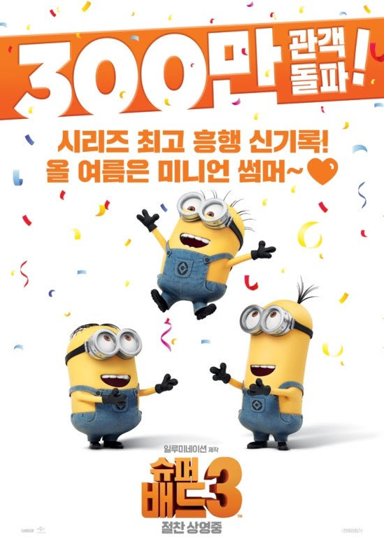 올여름 시원하고 유쾌한 흥행 돌풍을 일으키고 있는 영화 ‘슈퍼배드 3’가 개봉 19일째 300만 관객을 돌파하며 식지 않는 열기 속 흥행 감사 특별 포스터를 공개했다.