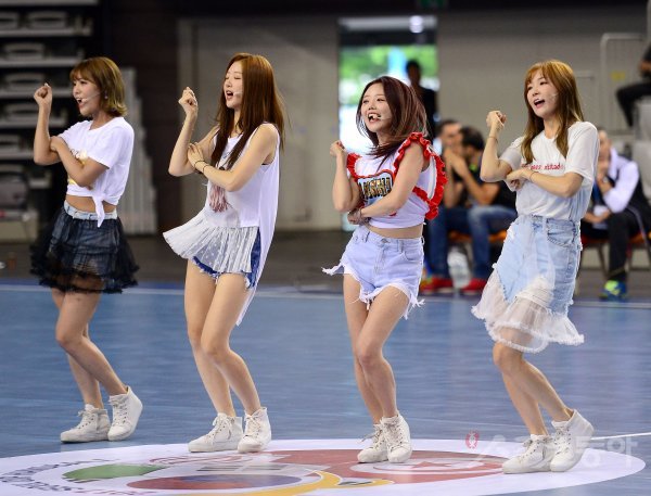 2017 서울컵 국제핸드볼대회가 13일부터 3일간 서울 송파구 SK핸드볼 경기장에서 열린다. 한국, 튀니지, 이란 3개국이 풀리그를 치뤄 순위를 결정 짓는 이번 대회에서 한국 남자대표팀은 대회 첫 날 튀니지와 경기를 갖은 후 15일 이란과 경기를 치른다. 13일 한국과 튀니지 경기 전 걸그룹 ‘리브하이’가 축하 공연을 하고 있다.