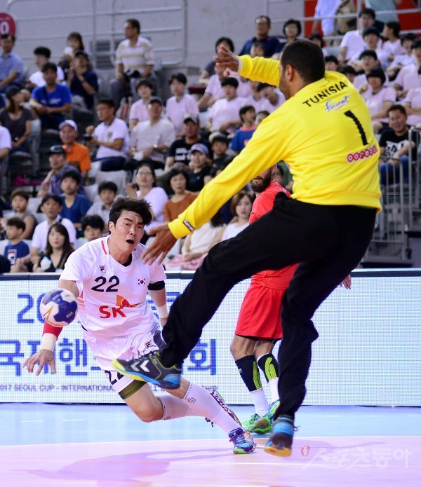 2017 서울컵 국제핸드볼대회가 13일부터 3일간 서울 송파구 SK핸드볼 경기장에서 열린다. 한국, 튀니지, 이란 3개국이 풀리그를 치뤄 순위를 결정 짓는 이번 대회에서 한국 남자대표팀은 대회 첫 날 튀니지와 경기를 갖은 후 15일 이란과 경기를 치른다. 13일 튀니지와 경기에서 한국 고경수가 수비를 뚫고 슛을 날리고 있다.