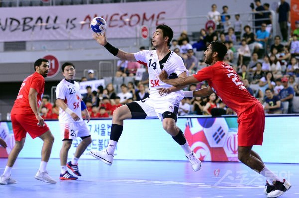 2017 서울컵 국제핸드볼대회가 13일부터 3일간 서울 송파구 SK핸드볼 경기장에서 열린다. 한국, 튀니지, 이란 3개국이 풀리그를 치뤄 순위를 결정 짓는 이번 대회에서 한국 남자대표팀은 대회 첫 날 튀니지와 경기를 갖은 후 15일 이란과 경기를 치른다. 13일 튀니지와 경기에서 한국 윤시열이 수비를 뚫고 패스를 있다.