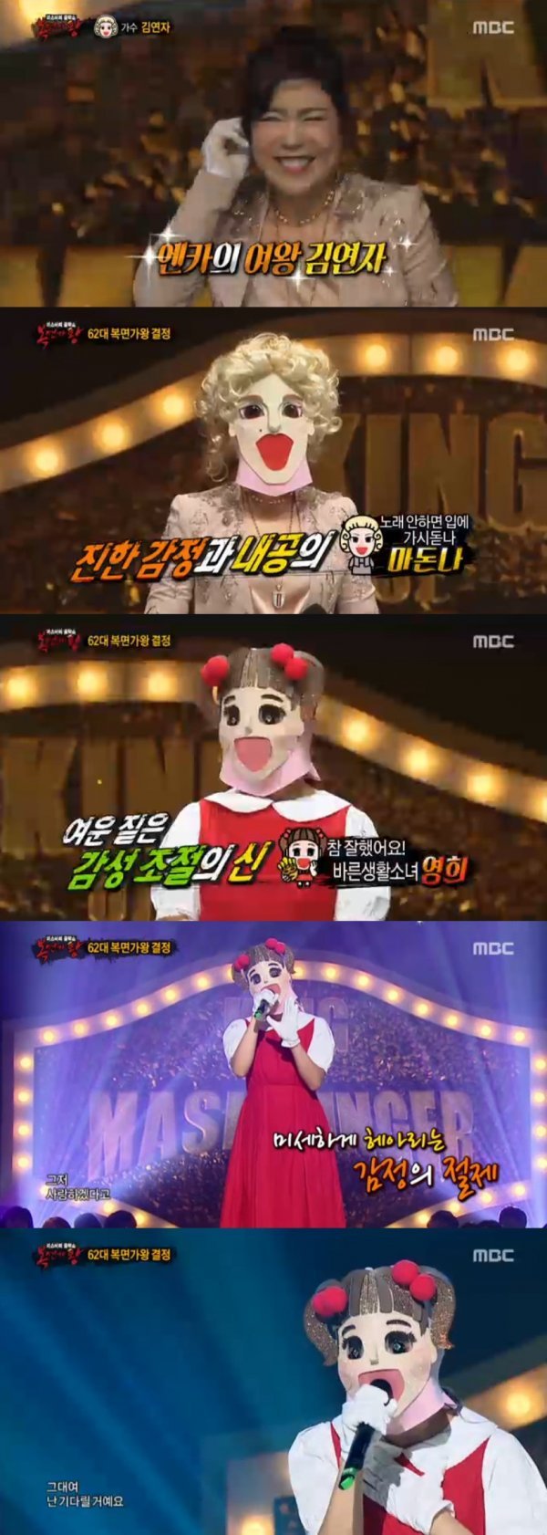 가왕 ‘영희’가 61대에 이어 62대 가왕으로 선정됐다. 마돈나의 정체는 김연자였다.