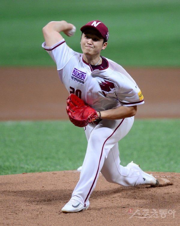 13일 서울 고척스카이돔에서 ‘2017 타이어뱅크 KBO리그’ 넥센 히어로즈와 한화 이글스의 경기가 열렸다. 넥센 선발투수 최원태가 힘차게 볼을 던지고 있다.