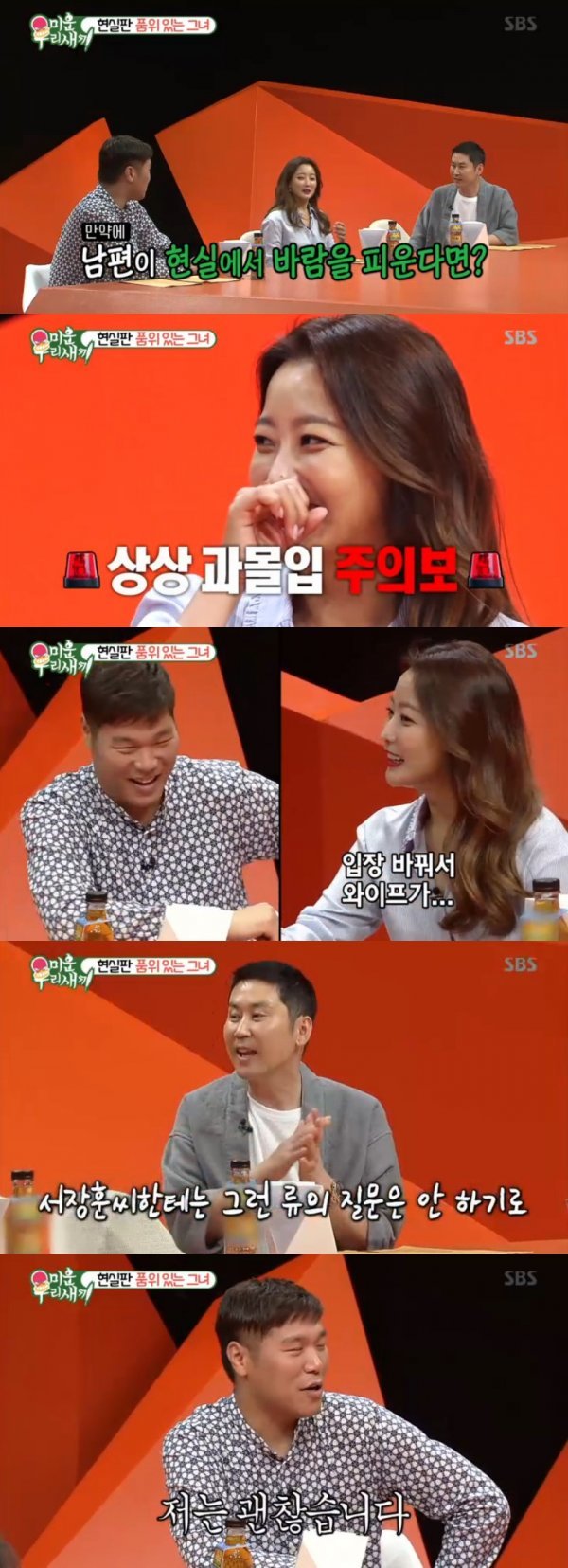 이에 김희선은 “죽이겠다”라고 답했다. 이후 김희선은 서장훈에게 “만약에 와이프가 두 남자 사이에서 그러면 어떻게 하겠냐”라고 물었다.