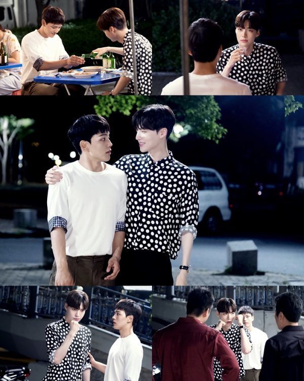 무엇보다 해성과 민준은 어깨동무를 하며 전혀 다른 ‘극과 극’ 표정을 지어내 안방극장에 폭소를 안긴다. 해맑게 웃고 있는 민준과 달리 깜짝 놀라는 해성의 표정이펼쳐진 것. 동시에 민준이 해성을 자신의 등 뒤로 보내고, 남자들과 맞서고 있는 모습 또한 공개되면서 두 사람에게 어떤 사건이 벌어질 지 궁금증이 증폭되고 있다.