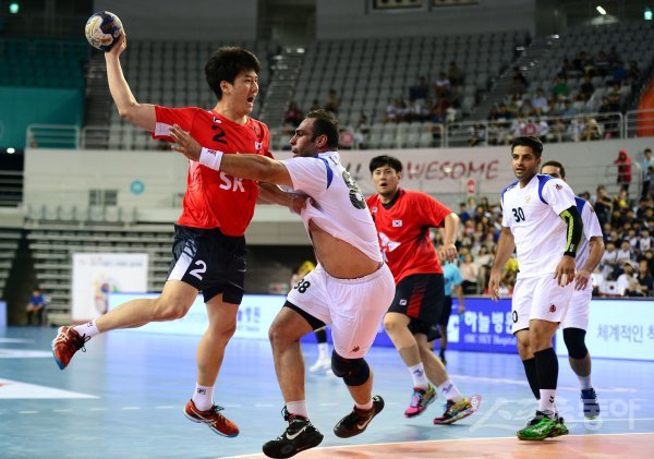 15일 서울 송파구 올림픽공원 SK 핸드볼경기장에서 ‘2017 서울컵 국제핸드볼대회’ 한국과 이란의 경기가 열렸다. 전반 한국 정의경이 이란 수비수를 피해 슛을 날리고 있다. 한국은 이란을 상대로 7점차 이상 승리하면 우승을 확정짓는다.