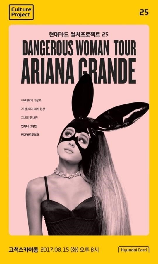 아리아나 그란데는 15일 저녁 8시 서울 구로구 고척 스카이돔에서 \'현대카드 컬처 프로젝트 25 아리아나 그란데\' 공연을 개최한다. 이를 앞두고 현대카드 측은 공식 페이스북을 통해 세세한 유의사항이 담긴 보안 관련 내용을 공지했다.