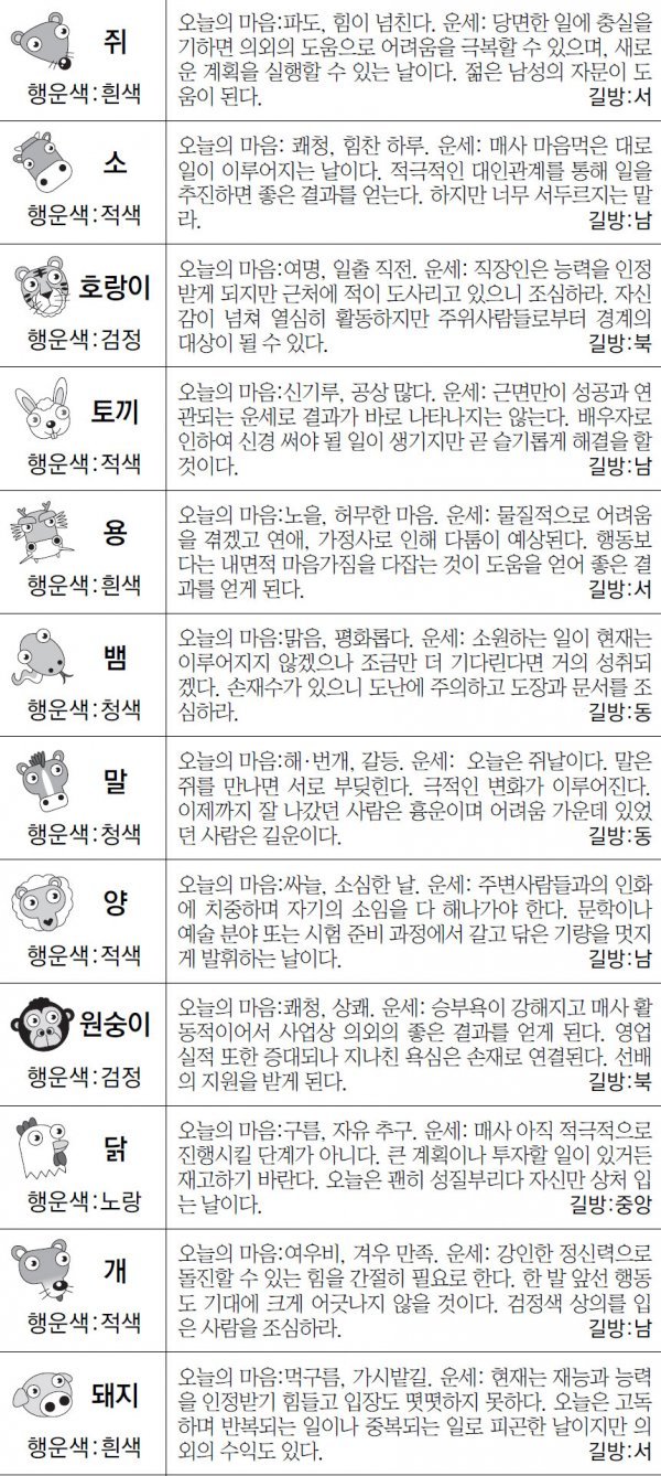 ■ 오늘의 운세|박경호의 운수 좋은 날