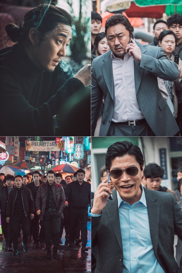 먼저, 나쁜 놈들을 한방에 때려잡는 괴물형사로 돌아온 마동석이 범죄 현장을 제압하는 장면과 사건을 추적하는 모습 등은 그 특유의 대담함과 능청스러움을 한번에 보여줘 이번 영화에서 어떤 스타일의 액션을 펼쳐 보일지 기대하게 한다. 이러한 마동석을 긴장시키는 범죄 조직의 악랄한 보스 ‘장첸’으로 돌아온 윤계상의 모습 또한 파격적이다. 이제껏 본적 없는 악독한 표정으로 상대를 위협하는 그는, 눈빛 하나로 긴장감을 조성하며 도시를 공포로 몰아넣은 조직 보스로서의 카리스마를 뿜어내 시선을 압도한다. 여기에 현재 인기리에 방영되고 있는 OCN 드라마 [구해줘]에서 일명 ‘미친 존재감’을 과시하며 시청자들을 사로잡고 있는 조재윤과 최근 대세 배우로 떠오르며 작품의 매력을 한껏 살려주는 최귀화 배우의 모습까지 공개돼 네 남자가 만들어낼 통쾌하고 시원한 시너지를 탄생시킬 것이다. 특히 최귀화 배우는 화제작 ‘택시운전사’에서도 ‘사복경찰’ 역을 통해 뇌리에 깊이 남을 악역을 연기해 이목을 집중시킨 가운데, 이번 작품에서는 그와는 180도 다른 모습으로 스크린을 메울 것이다.