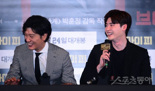 16일 서울 용산구 CGV 용산아이파크몰에서 영화 ‘브이아이피(V.I.P)’ 언론시사회 및 기자간담회가 열렸다. 배우 이종석(오른쪽)이 취재진의 질문에 웃으며 대답하고 있다.