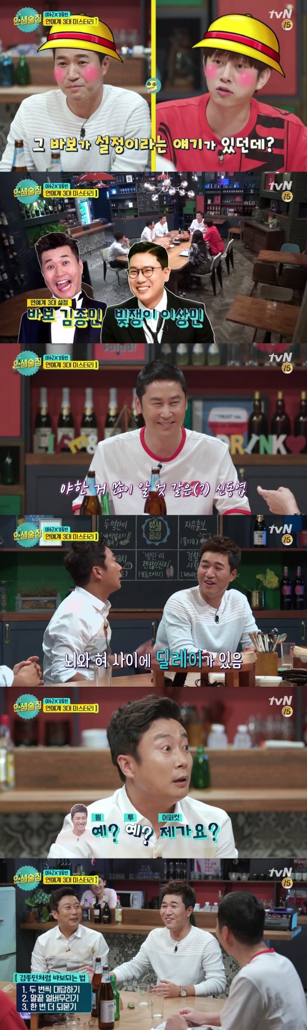 17일 네이버TV를 통해 선공개한 tvN ‘인생술집’ 영상에는 이수근, 김종민이 게스트로 출연해 재치있는 입담을 자랑하는 장면이 전해졌다.