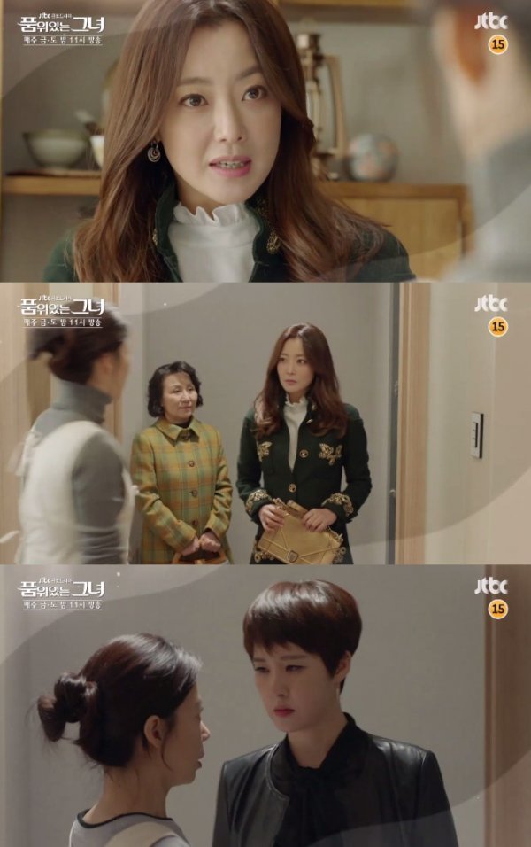 JTBC 금토드라마 ‘품위있는 그녀’(극본 백미경 연출 김윤철)에서 우아진(김희선 분)과 박복자(김선아 분) 두 여자가 풍숙정의 오풍숙(소희정 분)과 비슷한 듯 다른 만남을 가진다.