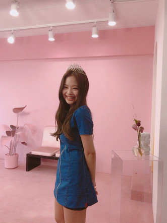 공개한 사진 속 제니는 왕관을 쓰고 동화 속 공주님처럼 아름다운 외모를 과시하고 있는 모습. 제니는 귀여운 미니 청원피스를 입고 웨이브 헤어스타일로 러블리한 매력을 더욱 과시했다. 핑크색의 배경은 제니를 동화 속 공주님처럼 보이게 만들었다.