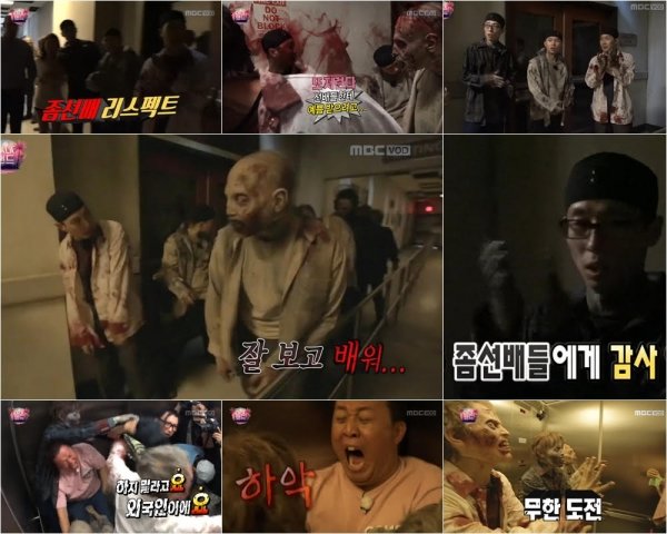 좀비로 변신한 세 멤버의 열정이 빛난 가운데, 이들은 자신들이 당한대로 박명수-정준하를 엘리베이터에서 똑같이 깜짝 놀라게 하며 좀비 가면을 쓰고 ‘무한도전’을 외쳐 큰 웃음까지 선사했다.