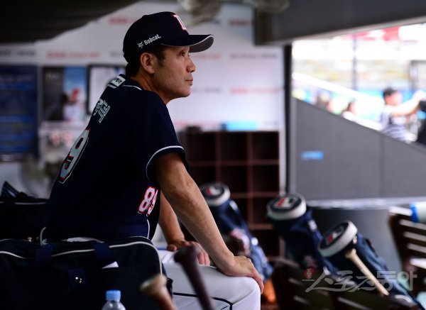 20일 수원 kt 위즈파크에서 ‘2017 타이어뱅크 KBO리그’ kt 위즈와 두산 베어스의 경기가 열린다. 전날 게실염 증세로 병원에 입원한 두산 김태형 감독을 대신해 한용덕 수석코치가 더그아웃에서 선수들의 훈련을 지켜보고 있다. 김태형은 감독은 19일 경기 후 복통을 느껴 병원에서 게실염 진단을 받았다.