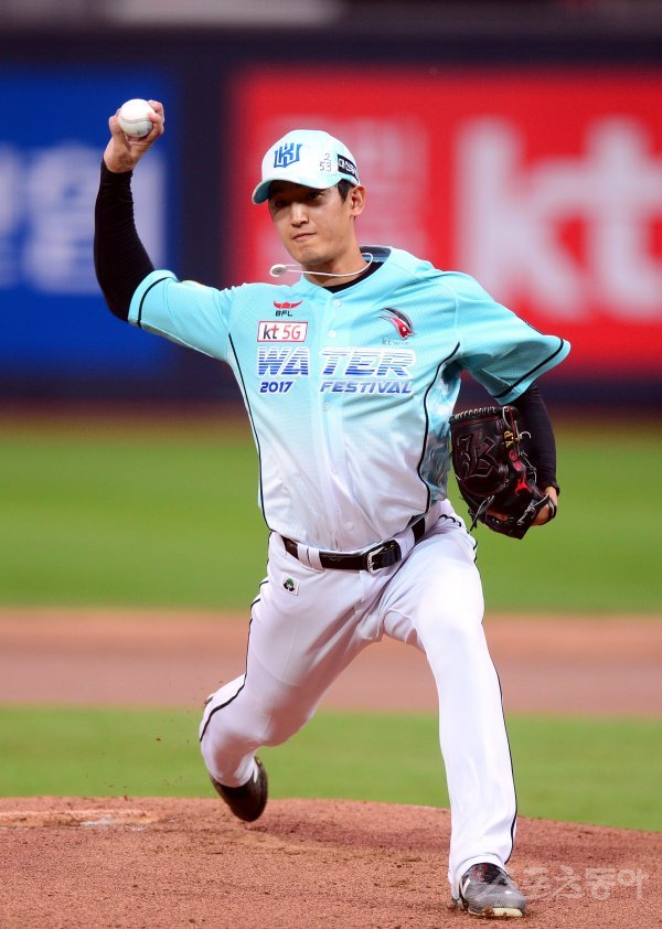 20일 수원 kt 위즈파크에서 ‘2017 타이어뱅크 KBO리그’ kt 위즈와 두산 베어스의 경기가 열렸다. kt 선발투수 고영표가 힘차게 볼을 던지고 있다.