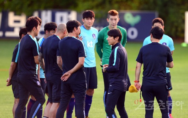 이란(8월 31일), 우즈베키스탄(9월 6일)과 2018 러시아 월드컵 아시아지역 최종예선을 앞둔 한국 축구대표팀이 21일 오후 파주국가대표트레이닝센터(NFC)에 소집됐다. 신태용 감독이 훈련 전 선수들에게 이야기를 하고 있다.