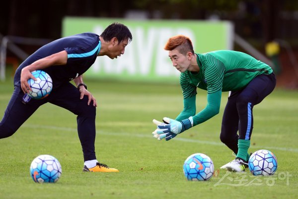 이란(8월 31일), 우즈베키스탄(9월 6일)과 ‘2018 러시아 월드컵’ 아시아지역 최종예선을 앞둔 한국 축구대표팀이 22일 파주국가대표트레이닝센터(NFC)에서 훈련을 가졌다. 축구대표팀 조현우가 훈련을 펼치고 있다.