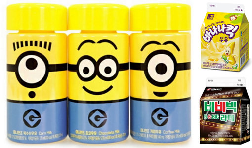동원F&B와 편의점 GS25가 협업해 출시한 ‘미니언즈우유’는 옥수수, 초코, 커피맛, 바나나맛, 딸기맛 등 5종으로 이뤄졌다. 지난해 9월에 출시해 올해 6월까지 누적판매량 1300만여 개를 기록하며 뜨거운 반응을 얻고 있다. 기존 우유에서 느낄 수 없었던 독특한 풍미의 옥수수맛 우유는 옥수수 특유의 고소한 맛이 궁금증을 자아내며 인기상품으로 자리 잡았다. 미니언즈 우유는 꾸준한 인기 덕분에 패키지 디자인을 계속 리뉴얼해 선보이고 있다.