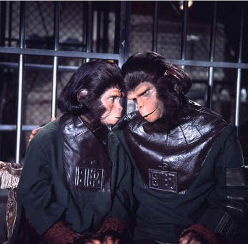 유인원이 인간을 지배하는 세계의 출발은 1968년 영화 ‘혹성탈출’부터다. 서기 2673년 미지의 행성에 불시착한 한 남자가 인간을 노예로 부리는 유인원 세계를 목격하면서 이야기는 시작된다. 그곳에서 인간은 말하는 법을 잊은 채 원시인처럼 살아가지만 유인원은 유창한 언어 구사는 물론 재판관, 과학자 심지어 고고학자까지 다양한 직업군을 갖췄다. 비록 컴퓨터그래픽 기술이 미약하던 그 시절, 연기자들이 원숭이탈을 쓰고 유인원을 연기했다.
