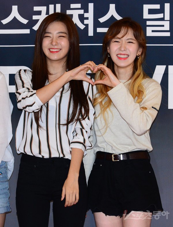 22일 서울 영등포구 여의도 IFC몰 노스아트리움에서 아이돌 걸그룹 레드벨벳이 글로벌 스포츠 브랜드의 신제품 출시 기념 행사 팬사인회에 참석했다. 레드벨벳 슬기와 웬디(오른쪽)가 포토타임을 가지고 있다.