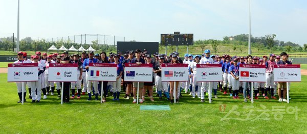 25일 경기도 이천 LG 챔피언스파크에서 ‘제 3회 LG컵 국제여자야구대회 2017’가 개막했다. 여자야구 선수들이 참석해 자리를 빛내고 있다. 이번 대회에는 한국(2팀)과 미국, 일본, 대만, 홍콩, 호주, 프랑스 등 7개국 8팀 170여 명의 선수가 출전해 28일까지 우승컵을 놓고 맞붙는다.