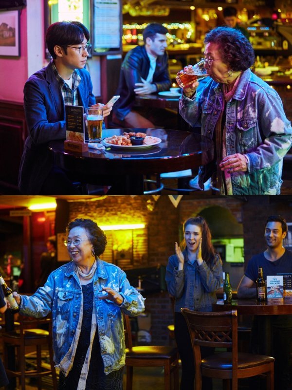 이번에 공개된 스틸은 민원으로 팽팽한 대립각을 펼치던 ‘옥분’과 ‘민재’가 영어를 통해 사제지간이 된 후, 이태원의 펍으로 영어 현장 학습을 나간 장면을 담고 있다. 이때 ‘옥분’은 아무나 소화하기 힘들다는 찢청 자켓에 링 귀걸이, 머플러까지 완벽하게 소화하고 있어 시선을 단번에 사로잡는다. 먼저 외국인과 5분간 대화하고 오라는 ‘민재’의 미션에 긴장한 듯 맥주를 들이키는 ‘옥분’의 모습은 처음으로 외국인 앞에서 영어를 구사해야 하는 ‘옥분’의 일생일대의 경험으로 떨리는 마음을 짐작하게 한다.