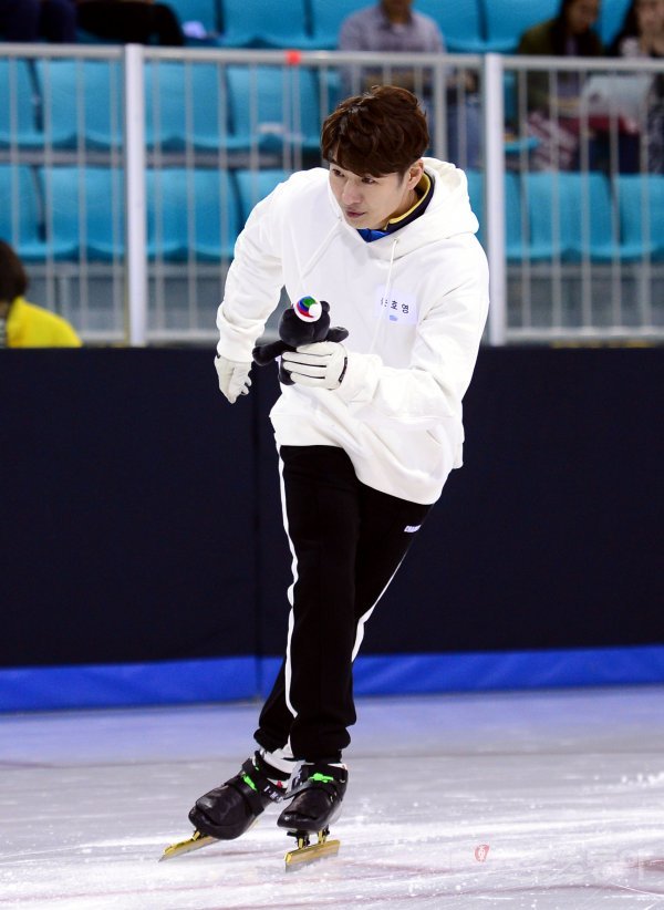 손호영이 쇼트트랙 시범을 선보이고 있다.
