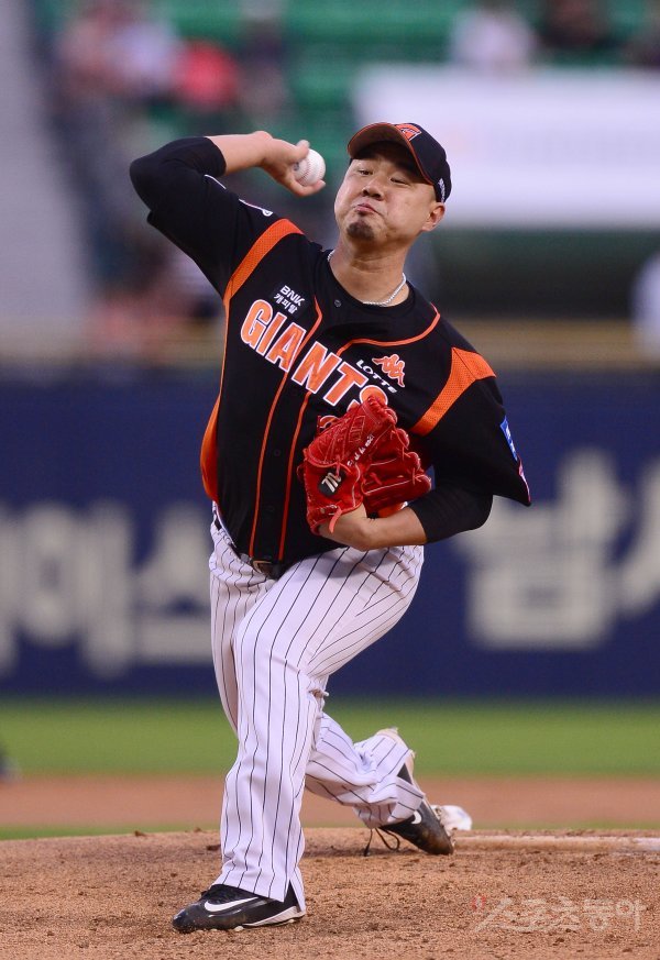 30일 서울 잠실야구장에서 ‘2017 타이어뱅크 KBO 리그’ 롯데자이언츠와 두산베어스 경기가 열렸다. 선발 투수로 등판한 롯데 송승준이 역투하고 있다.