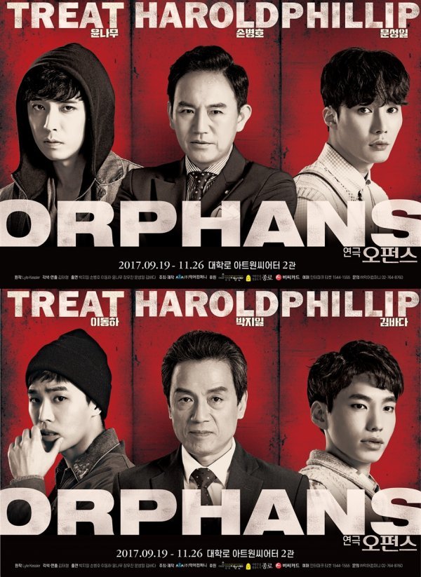연극 ‘오펀스’는 미국의 극작가 라일 케슬러의 대표작으로, 세상과 단절되어 살아온 고아형제 형 ‘트릿’과 그의 동생 ‘필립’이 어느 날 나타난 50대 중년의 시카고 갱 ‘해롤드’를 만나 우연히 시작된 그들의 동거 이야기를 담은 작품이다.