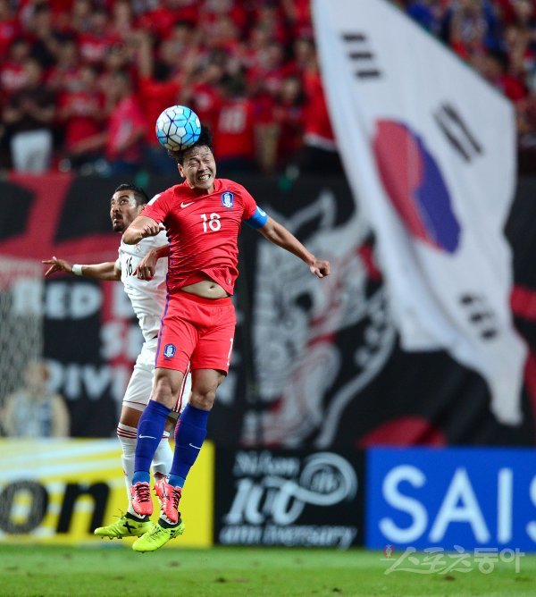 한국 축구대표팀이 31일 서울월드컵경기장에서 이란과 2018 러시아 월드컵 아시아지역 최종 예선 A조 9차전을 가졌다… 한국 김영권이 이란의 수비수와 공중볼을 다투고 있다.
