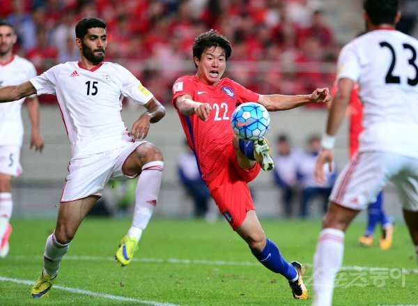 한국 축구대표팀이 31일 서울월드컵경기장에서 이란과 2018 러시아 월드컵 아시아지역 최종 예선 A조 9차전을 가졌다. 한국 권창훈이 이란의 수비를 뚫고 슛팅을 하고 있다.