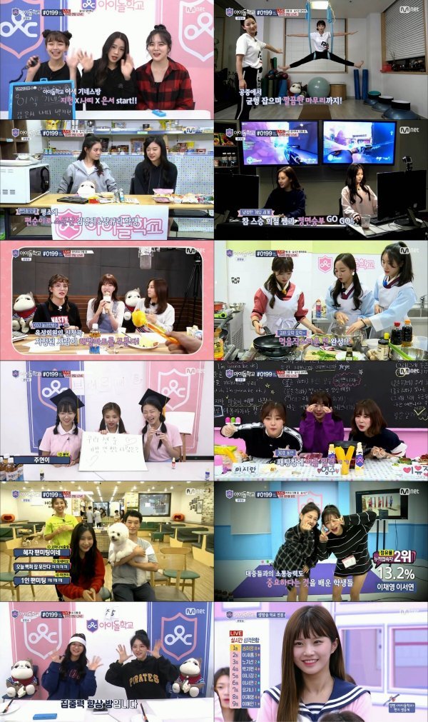 ‘너는 펫 방’을 진행한 김나연, 배은영, 신시아는 애견카페를 방문해 강아지들과 교감하고, 직접 현장을 찾아온 육성회원과의 깜짝 팬미팅도 가졌다. 이시안, 조영주, 이유정은 ‘고독한 대식가 방’을 통해 차원이 다른 먹방을 선보이며 예능감을 뽐냈고, 조유리, 추원희, 김주현은 ‘브레인 배틀 방’을 진행해 ‘아이돌학교’ 학생들에 대한 여러 가지 질문을 육성회원과 함께 풀어보며 소통했다. 마지막으로 장규리, 김명지는 ‘초간단! 즉석 매점 요리’를 통해 편의점 음식을 이용한 특별 요리법을 공개했다.