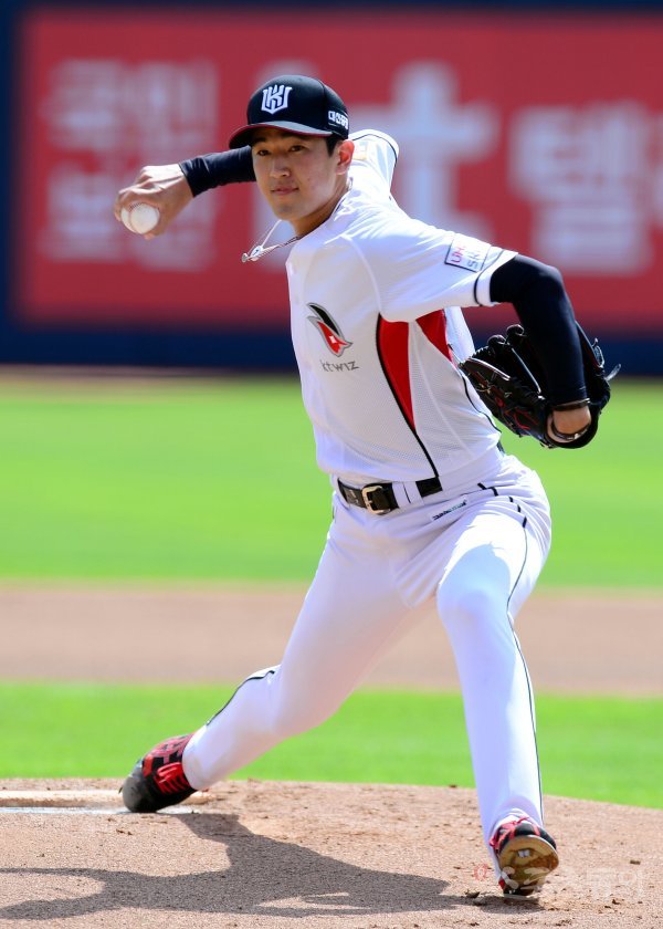 3일 경기도 수원 kt위즈파크에서 ‘2017 타이어뱅크 KBO리그’ kt 위즈와 SK 와이번스의 경기가 열렷다. kt 선발투수 고영표가 힘차게 볼을 던지고 있다.