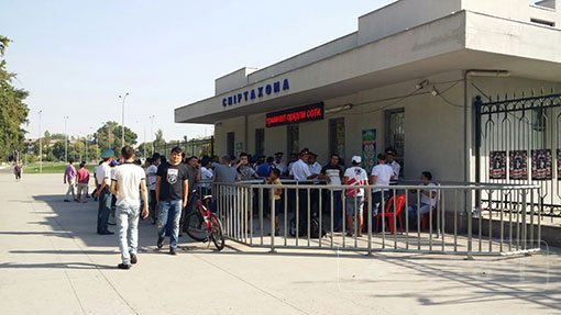 우즈베키스탄-한국전 입장권을 구입하기 위해 분요드코르 스타디움 티켓박스에 늘어선 줄. 타슈켄트 | 남장현 기자 yoshike3@donga.com