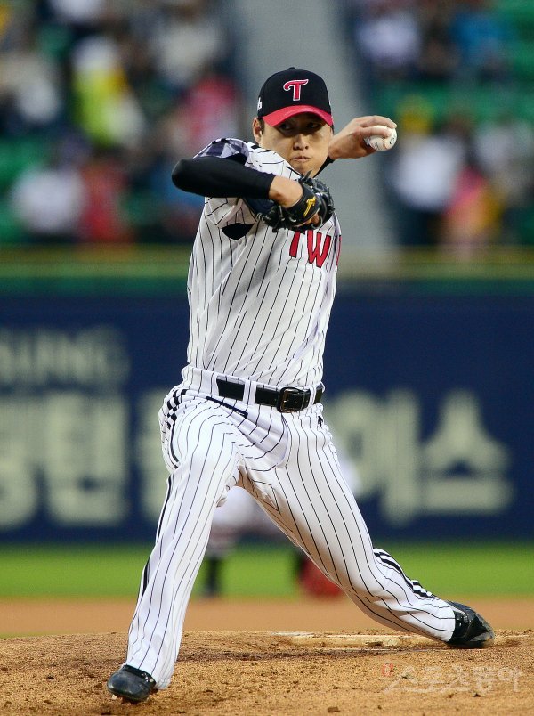 5일 서울 잠실야구장에서 ‘2017 타이어뱅크 KBO리그’ LG트윈스와 KIA타이거즈의 경기가 열렸다. 1회초 LG 선발 차우찬이 힘차게 공을 던지고 있다.