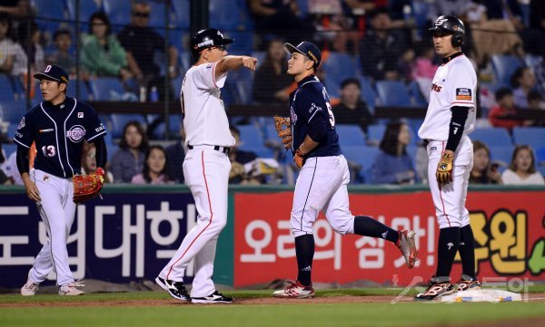 6일 대전 한화생명이글스파크에서 ‘2017 타이어뱅크 KBO 리그’ 두산베어스와 한화이글스 경기가 열렸다. 3회말 1사 1,2루 한화 로사리오에게 1타점 좌전 2루타를 허용한 후 두산 3루수 최주환이 교체되고 있다.