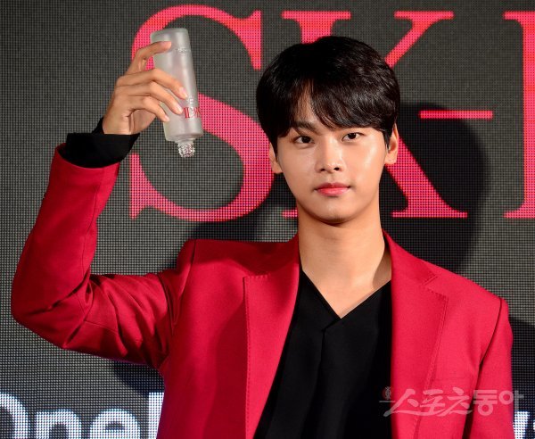 빅스 엔이 6일 서울 강남구 신사동에 위치한 카페에서 진행된 한 뷰티브랜드 캠페인 런칭 기념행사에 참석해 포토타임을 갖고 있다.