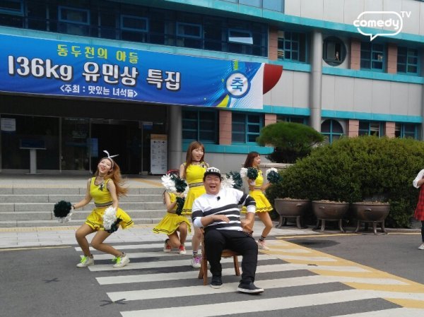 코미디TV ‘맛있는 녀석들’ 제작진은 7일 오후 공식 페이스북에 유민상 특집편 촬영 중이라는 글과 함께 ‘동두천의 아들 136kg 유민상 특집’ 플랜카드가 걸린 사진을 공개했다.