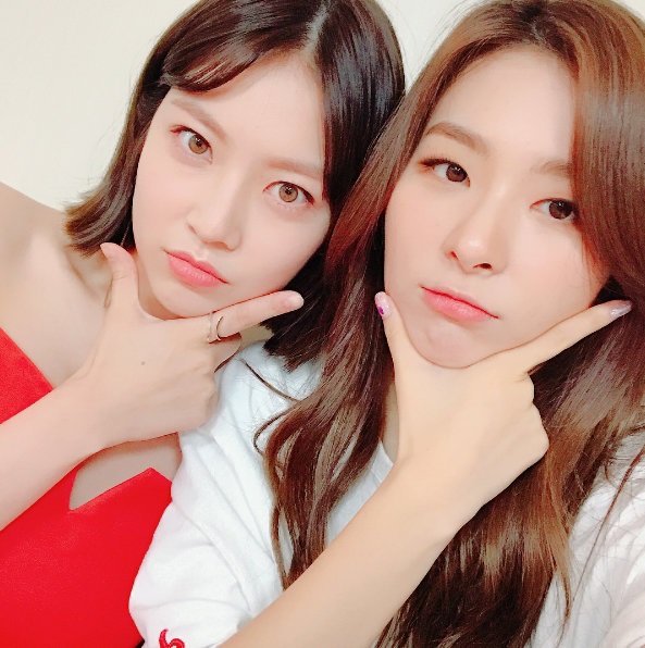 공개된 사진 속 공승연은 레드벨벳 슬기와 얼굴을 맞대고 있는 모습. 공승연과 슬기는 똑같은 브이 자 포즈로 얼굴을 감싸며 비슷한 표정을 지었다.