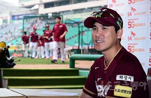 10일 인천 SK행복드림구장에서 \'2017 타이어뱅크 KBO리그\' SK 와이번스와 넥센 히어로즈의 경기가 열린다. 경기전 넥센 장정석 감독이 취재진과 인터뷰를 하고 있다. 인천 | 김민성 기자 marineboy@donga.com