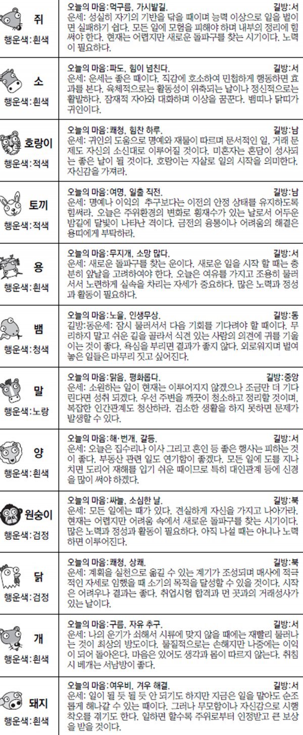 ■ 오늘의 운세|박경호의 운수 좋은날