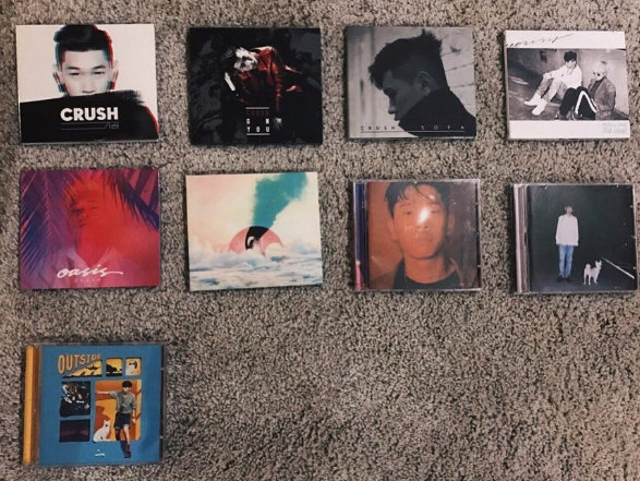 공개된 사진 속에는 크러쉬가 지난 3년 동안 발매한 앨범들이 놓여 있었다. 2014년 발매한 ‘가끔’ 부터 지난 6월 발매한 ‘outside’까지 순서대로 나열된 모습. 9개의 음반이 크러쉬의 지난 3년 간 음악 활동을 요약한 듯 보였다.