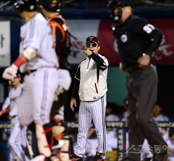 12일 서울 잠실야구장에서 ‘2017 타이어뱅크 KBO 리그’ 롯데자이언츠와 LG트윈스 경기가 열렸다. 3회말 공격을 들어가며 LG 양상문 감독이 선수단을 철수시키고 있다.