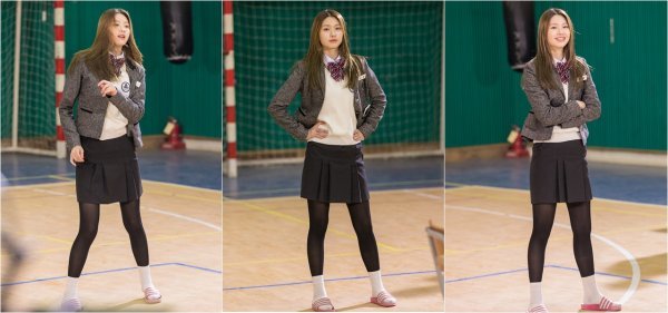 또 다른 사진 속 김진경은 긴 생머리를 흩날리며 춤을 추고 있다. 슬리퍼를 신어 자유롭게 춤을 추기 어려웠음에도 불구하고 유연한 몸놀림으로 음악에 맞춰 신나게 춤을 추는 김진경은 춤추는 것이 즐거운 듯 미소 띤 입술과 생기 넘치는 표정으로 에너지 충만한 여고생의 발랄함을 보여주고 있다. 사진은 드라마 속 조별 장기자랑 준비를 위해 춤을 연습하고 있는 장면으로 김진경이 어떤 춤 실력을 보여줄지 호기심을 불러일으키고 있다.