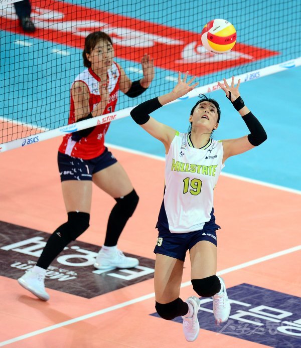 13일 천안유관순체육관에서 ‘2017 천안·넵스컵 프로배구대회’ 여자부 B조 현대건설과 KGC인삼공사 경기에서 현대건설 이다영이 토스를 하고 있다.