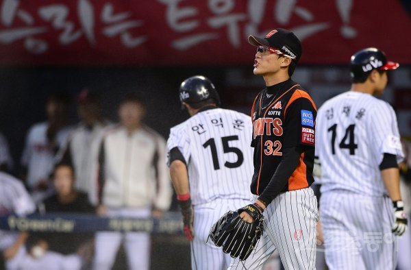 13일 서울 잠실야구장에서 ‘2017 타이어뱅크 KBO리그’ LG트윈스와 롯데자이언츠의 경기가 열렸다. 1회말 1사 3루에서 LG 박용택에게 희생 플라이로 실점을 허용한 롯데 선발 박세웅이 아쉬워하고 있다.