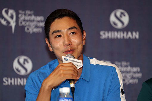 대회 개막을 하루 앞둔 9월 13일 인천 베어즈베스트 청라GC에서 벌어진 제 33회 신한동해오픈 기자회견에서 8월 제대한 예비역 병장 배상문이 취재진의 질문에 대답하고 있다. 사진제공 ㅣ 신한금융그룹