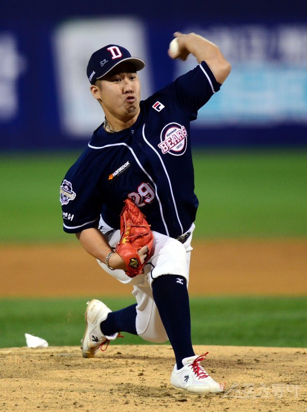 13일 창원 마산야구장에서 ‘2017 타이어뱅크 KBO리그’ NC 다이노스와 두산 베어스의 경기가 열렸다. 두산 선발투수 유희관이 힘차게 볼을 던지고 있다.