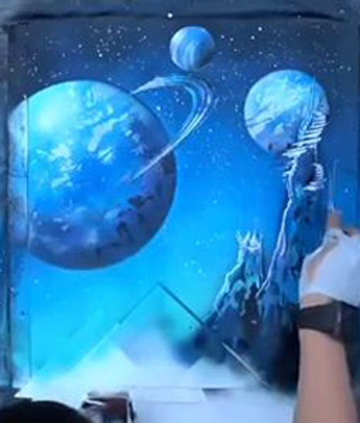영상의 주인공이 스프레이를 사용해 그린 환상적인 그림. 사진출처|꿀잼TV 유튜브 화면캡처