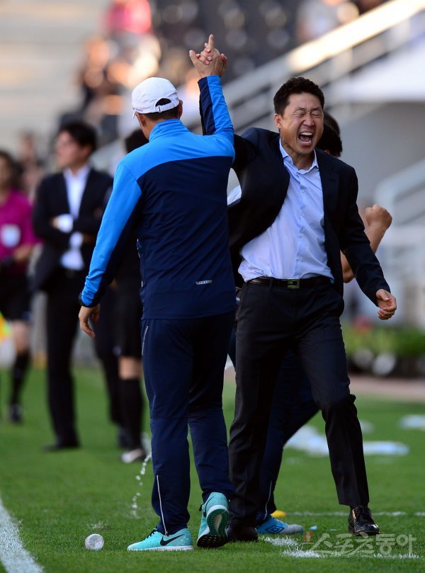 송시우의 골에 환호하는 인천 이기형 감독!